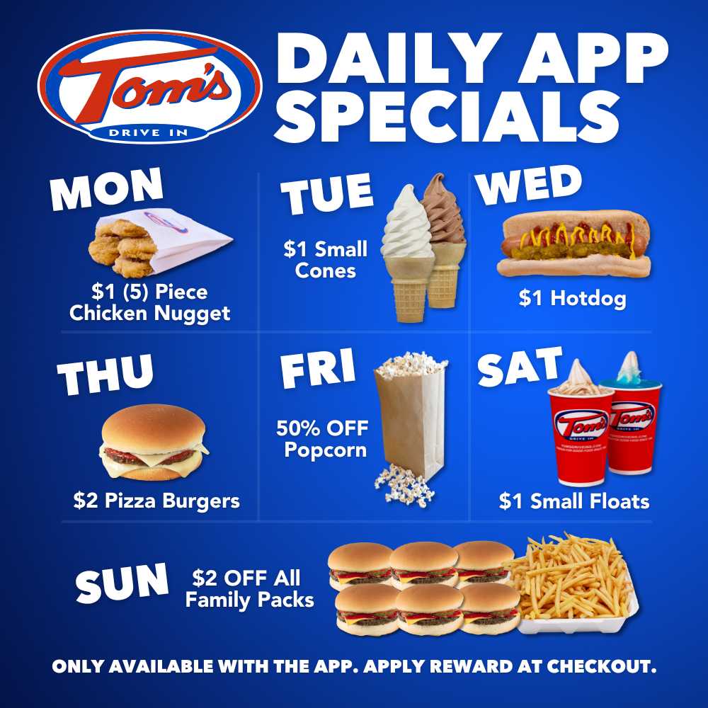 Tom's also excels in offering unique treats like their slush puppies and freshly baked cookies, perfect for satisfying your sweet tooth. With a playful décor reminiscent of classic carnival themes and attentive staff, Tom's Drive In promises an enjoyable dining experience every time you visit.